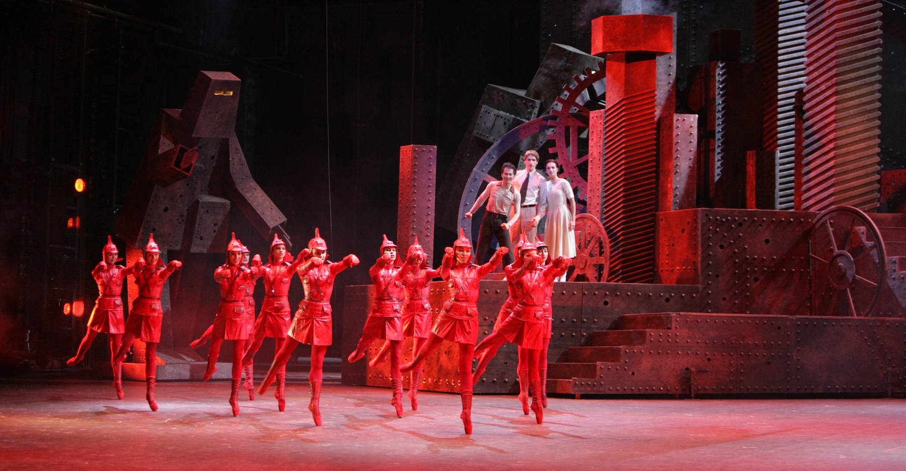 Composed by Dmitri Shostakovich when he was only 25, the ballet The Bolt never reached its premiere, mothballed for 75 years immediately after its 1931 dress rehearsal. An all-new production with choreography by Alexei Ratmansky in splendid sets by Simon Pastuch captures the original's caustic dissection of socialist realist fantasy through stunning dance sequences and inventive staging. Shostakovich’s original subversion of the overtly propagandistic storyline—about an individualistic saboteur who attempts to impede production and progress in a factory—is accentuated further to create a complex image of the contradictions of life in the early Soviet Union. The composer’s vividly cartoonish score manipulates and mashes up popular and elite music, as well the sounds of a factory floor and the doctrinaire optimism relentlessly trumpeted to the populace. Pastuch’s scenography draws thoughtfully upon constructivism and other avant-garde movements of Soviet art and theater for inspiration, and is beautifully integrated with the choreography.